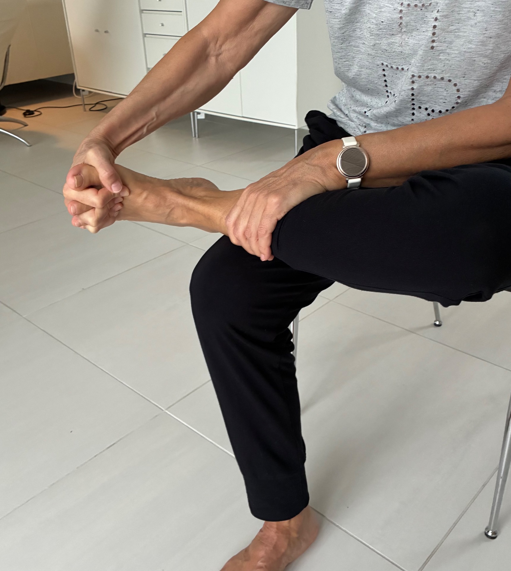 Så følger en række øvelser for mobilitet, styrke og power og efter det tester vi føddernes tilstand igen – og mærker effekten af øvelserne. Vi slutter af med dejlig fod-selvmassage. 🦶